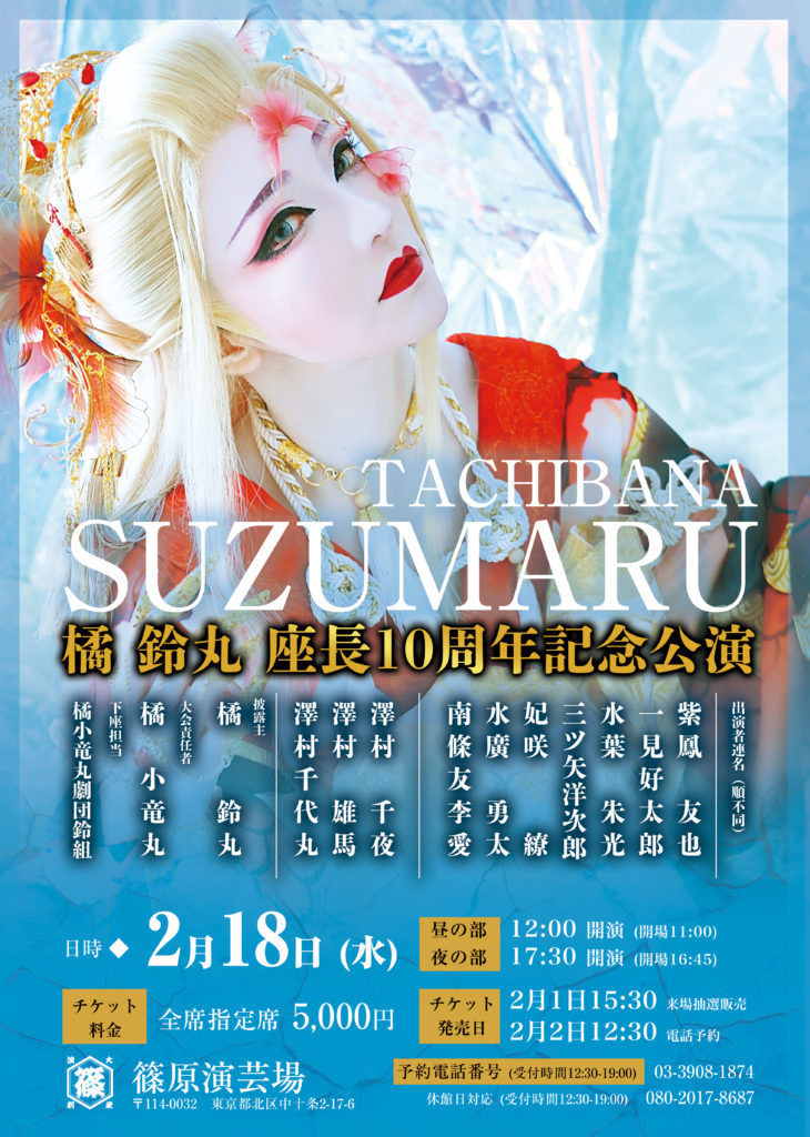 2月18日(水)、篠原演芸場にて橘小竜丸劇団鈴組特別公演として、『橘 鈴丸 座長10周年記念公演』の開催が決定しました。