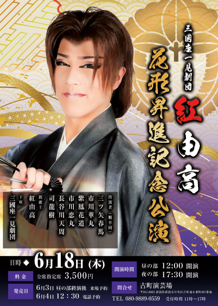 6月18日(木)、新潟古町演芸場にて三國座一見劇団特別公演として、『紅由高 花形昇進記念公演』の開催が決定しました。