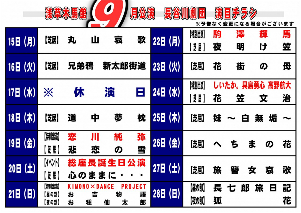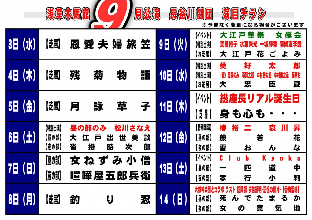 令和7年 9月公演 長谷川劇団